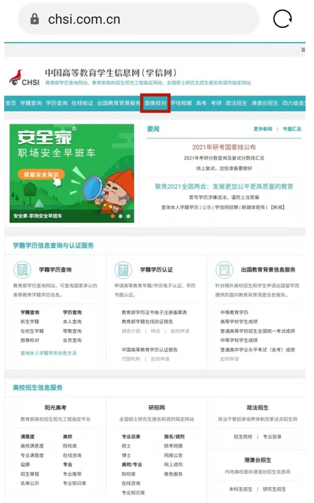 3、進(jìn)入學(xué)信網(wǎng),選擇畢業(yè)證書圖像校對(duì)。