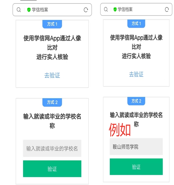 4、選擇方式2,輸入自己就讀的大學(xué)名稱。
