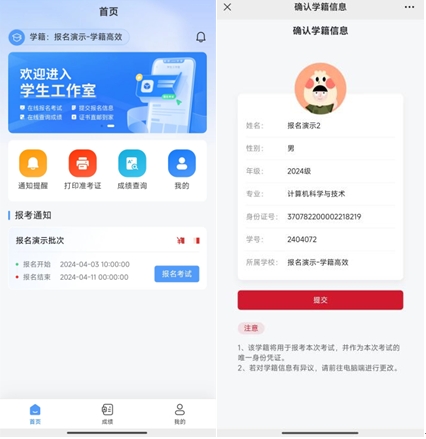 1、考生初次登錄報(bào)名系統(tǒng)時(shí),系統(tǒng)將自動(dòng)顯示考生的個(gè)人信息,考生應(yīng)反復(fù)核對(duì)姓名、身份證號(hào)碼等信息,確認(rèn)無(wú)誤后方可報(bào)名,否則將導(dǎo)致成績(jī)合格的考生成績(jī)無(wú)法被所在高校導(dǎo)出認(rèn)定。因考生本人錯(cuò)報(bào)、漏報(bào)造成無(wú)法參加考試或者考試成績(jī)無(wú)效,由考生本人負(fù)責(zé)。